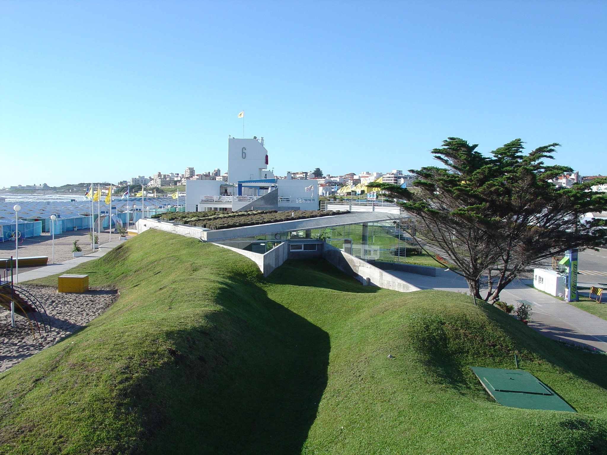 La primera etapa,de reacondicionamiento de los balnearios consistia en un edificio administrativo que debía servir de puerta de entrada al complejo y a su vez enclavarse en medanos artificiales que son parte del master plan del área de Mogotes